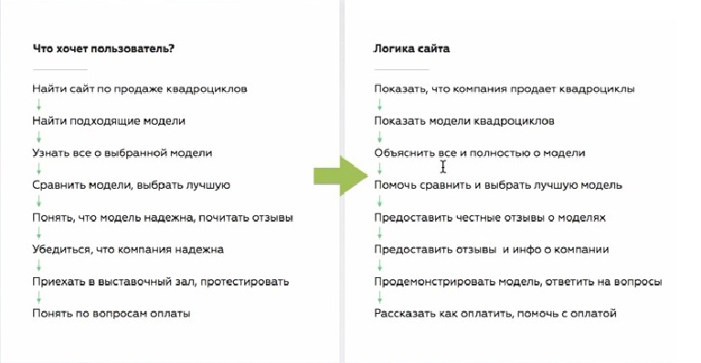 Ваша главная задача – переместить клиента из точки А в точку Б. Точка А – то, где он сейчас (у него есть потребность и он еще не воспользовался вашим товаром или услугой), точка Б – то, куда он попадет.