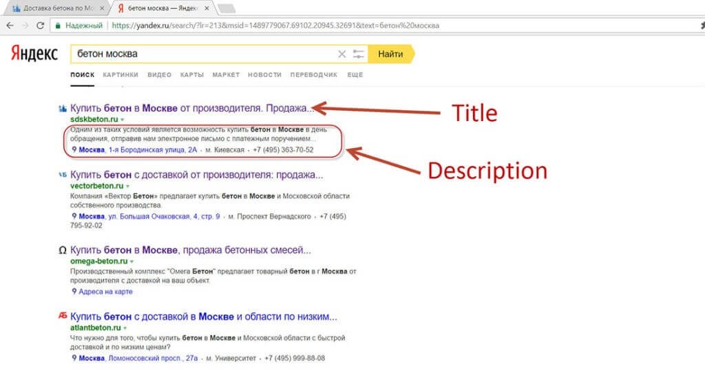 Заголовок сайта и описание – это то, как будет выглядеть ваш сайт в поисковых системах. Также, добавьте на главную страницу тег H1 (главный заголовок страницы). Он должен быть понятным и привлекающим и содержать основной ключевой запрос. Например: Доставка суши в Новосибирске.