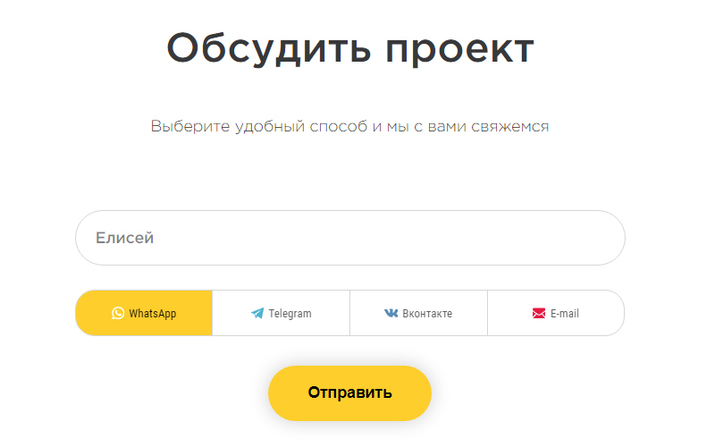 Сейчас мы уже имеем целое поколение молодых людей, которые привыкли общаться только в мессенджерах. Для них будет некомфортно разговаривать с менеджером по телефону. Поэтому, при создании форм связи, позаботьтесь о том, чтобы у клиента была возможность выбрать способ контакта с вашим менеджером – Telegram, WhatsApp, ВК, E-mail, телефон и т.д.