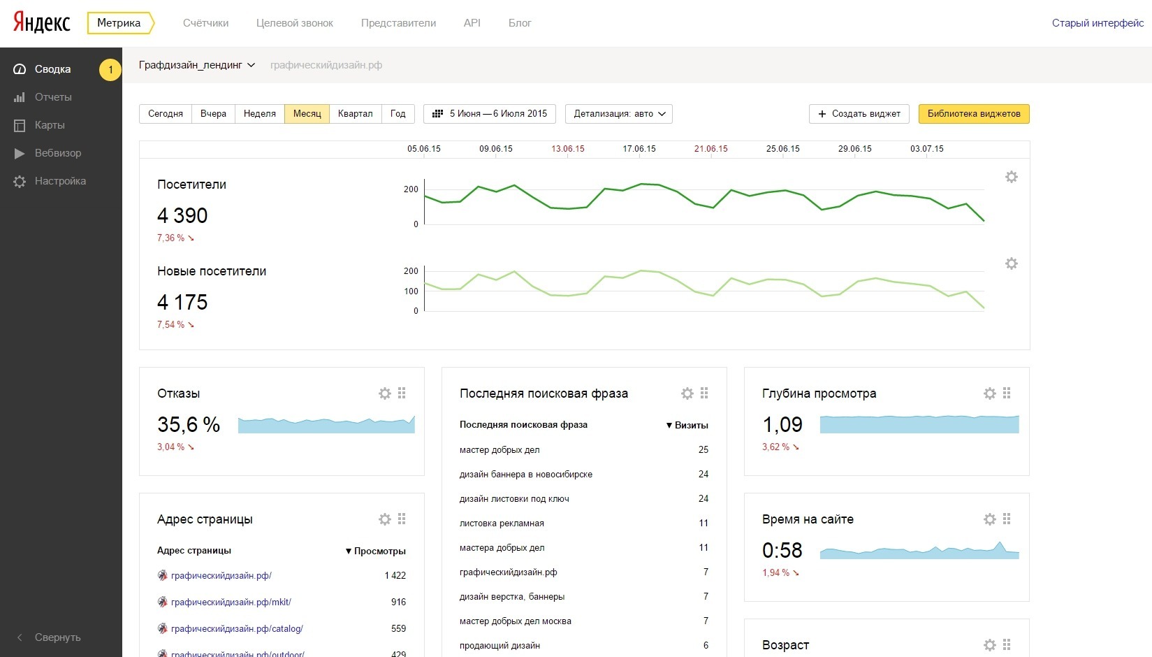 С подключением аналитики начинается основная работа сайта. Отслеживание эффективности, конверсии, "процент отказов", глубина просмотров