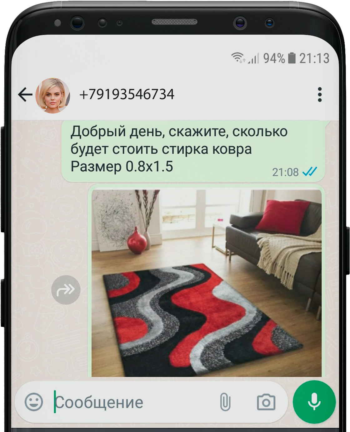 стирки ковра по фото в WhatsApp