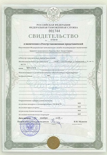 БЭС входит в Реестр таможенных представителей (свидетельство ФТС РФ № 0738/00). За долгие годы работы мы заслужили хорошую репутацию в таможенной сфере.